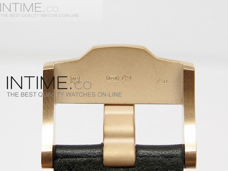 Decoration: platinum-plated movement plate and rotor which are manufactured according to the authentic movement, the most beautiful AP Caliber 3126 movement clone of the moment.