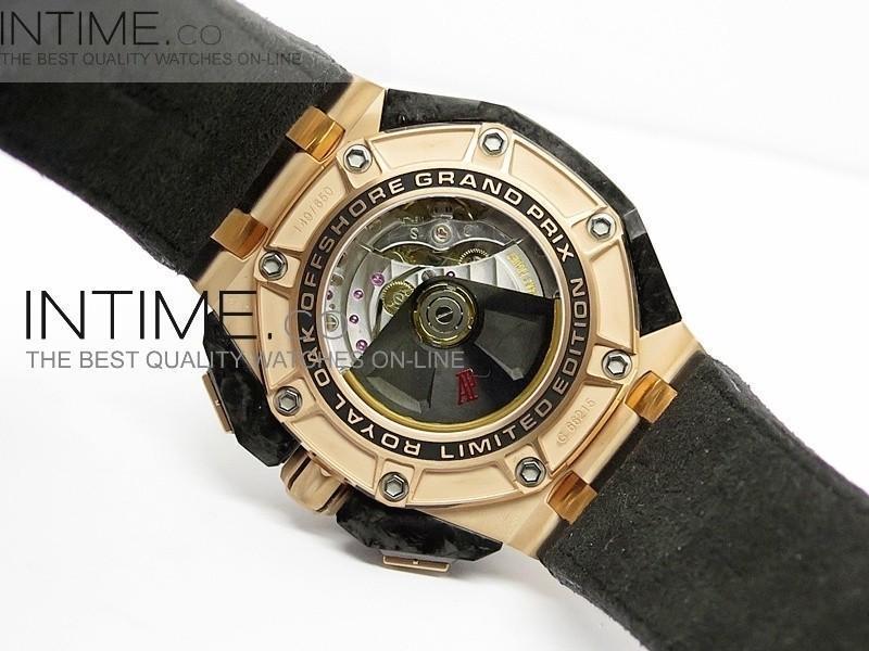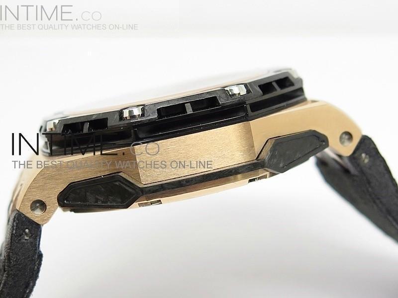 Case: Solid 316F stainless steel case, 18K rose gold plated, with forged carbon parts, unique pattern on each case, solid stainless steel caseback with perfect engravings