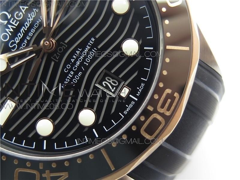 Bezel Uni-directional rotating black ceramic bezel, 18k rose gold plated